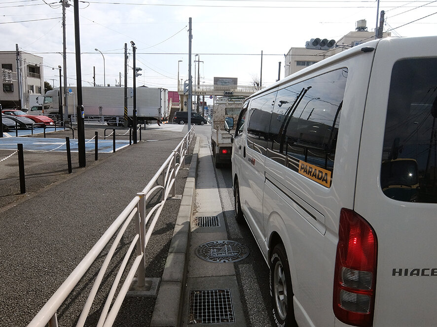 国道16号を走るのですが、ここはいつも混んでいますし路側帯も狭いのです。後ろから大型車に引っ掛けられたりでもしたら大変です。