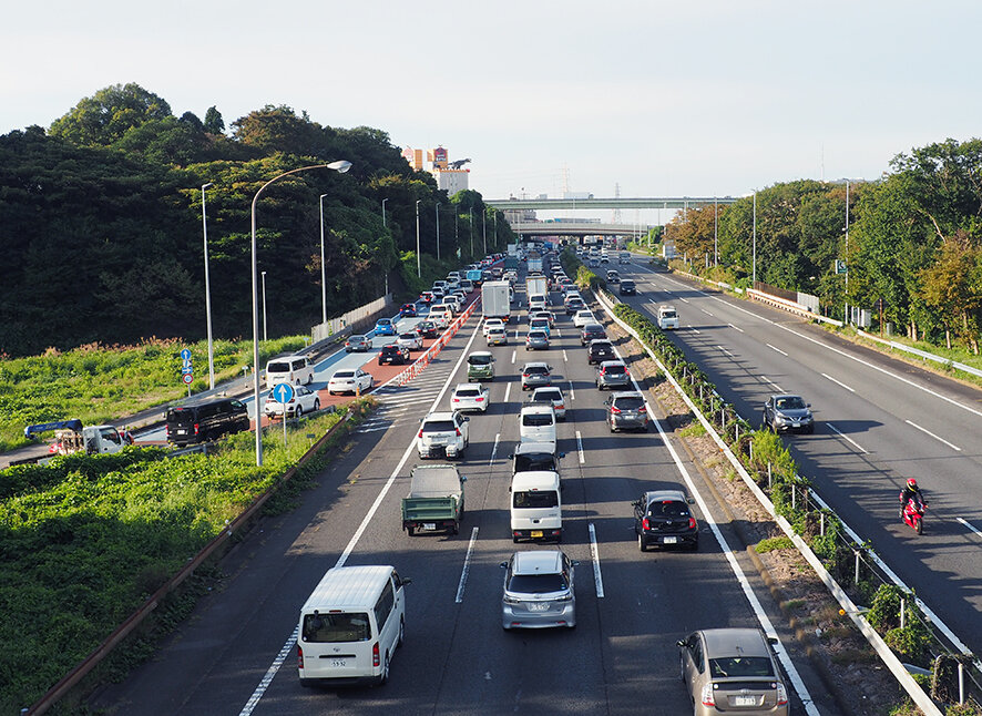 インター合流付近を中心にご覧の状況。これだとオートバイでも走りにくそうですね。