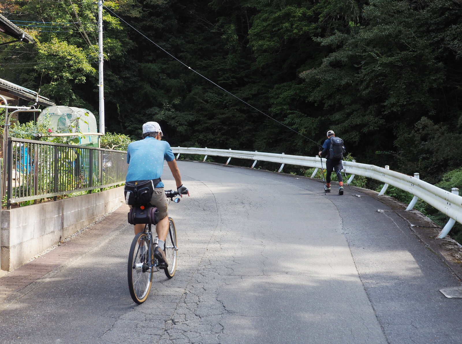 ちなみに写真に写り込んでいる登山者は自転車より速いスピードで登っていくのでした。自身も山歩きするので分かりますが、勾配のキツイ坂道は身軽な歩きの方が速かったりするのです(汗)。