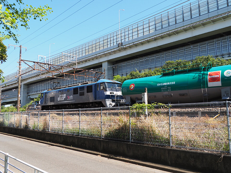 お次は根岸駅に移動して、貨物列車(タンク車)を木陰から眺めます。
