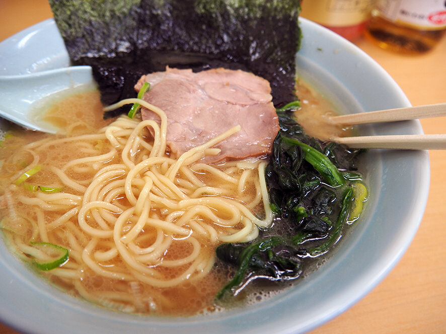 家系ラーメンに似ていますが、それとは異なる中太ストレート麺を使った豚骨醤油ラーメンです。