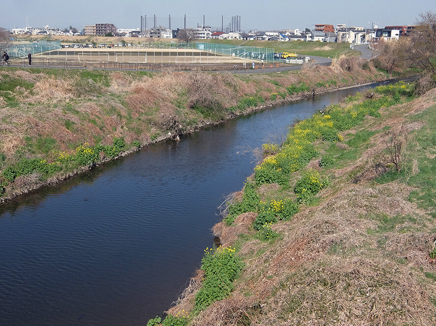 調布市に入ると菜の花も咲き、のどかな風景になってきます。