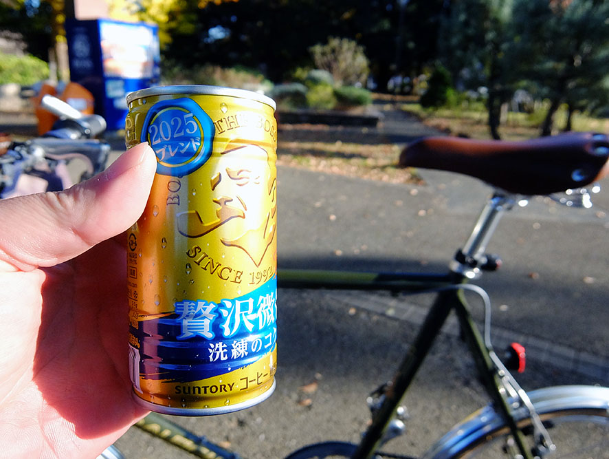 打ち合わせを終えて、近くの公園で缶コーヒーブレイク。