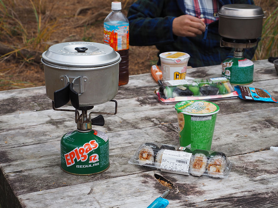 二人とも同年代(約40年前)のEPIガスカートリッジのコンロを愛用。