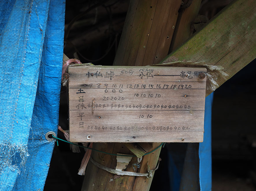 朽ち果てかけている茶屋跡には、いつの頃のものなのか、バスの時刻表が。