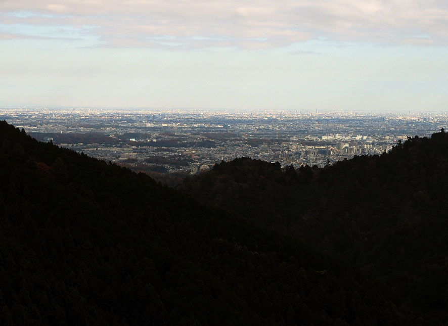 生憎高尾山周辺では雲が広がってしまいましたが、都心の平野部には陽が当たっています。