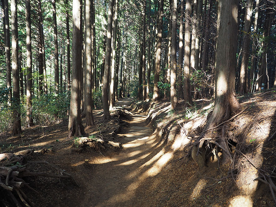 時折陽射しが差し込んで雰囲気の良い山道を照らします。