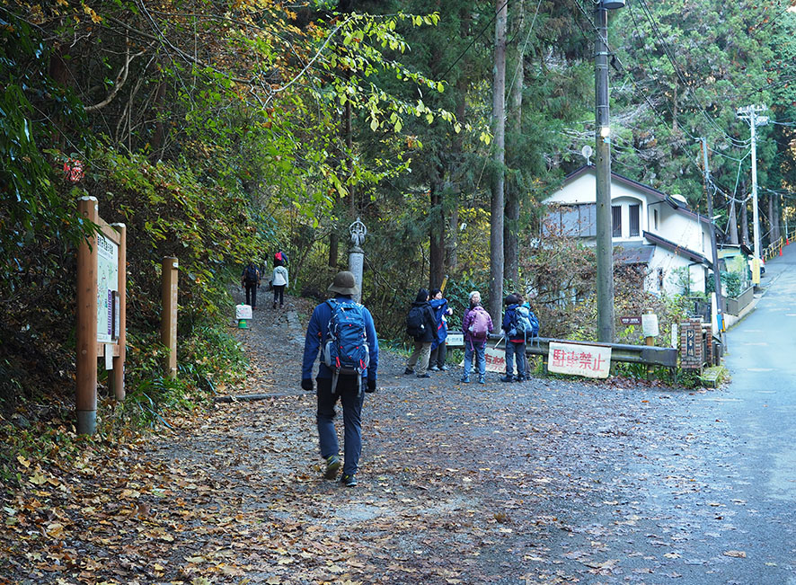古道の緩い傾斜を20分ほど歩くと登山口に到着。