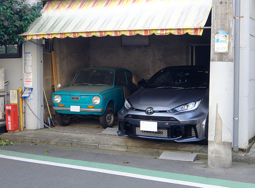 昔の軽と比べるとヤリスがとっても巨大に見えますね。