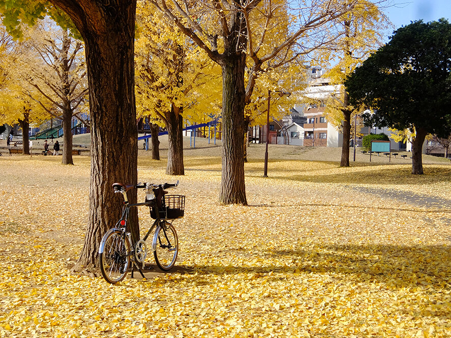 銀杏爆弾拾わぬように自転車を走らせます。