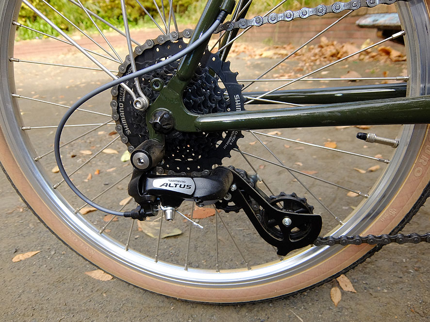 そんな歯数差23TもあるフリーをシャドータイプRDでもないのにスパスパ変速してくれる、シマノアルタス。変速機マニアでもある私からすると超安物ディレーラーですが、さすが現代シマノ製品。昔のカンパ、デュラエース、シュパーブプロ なんかよりもサクサク動きます。